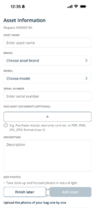 بعد الضغط على الطلب الخاص بأصلك، أضف معلومات تفصيلية عن أصلك تشمل: